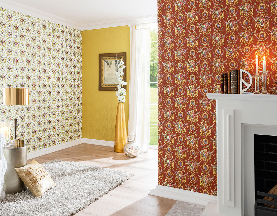 Этот стиль ассоциируется с роскошью, цветовой сдержанностью и изысканностью. Могут использоваться как однотонные, так и богато декорированные обои с флористическими, геральдическими и другими мотивами.