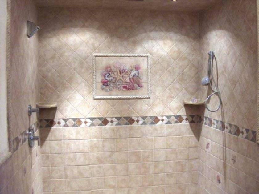 Для небольшой душевой лучше всего подойдут различные вставки или узоры, которые разбавят помещение, но при этом не будут его загромождать. Это могут быть как тематические или этнические рисунки, а также современные изображения. Кроме того, для маленькой ванной можно использовать стеклянную поверхность, зеркальные изделия, сложные выпуклые элементы. Однако шершавая поверхность весьма сложна в эксплуатации, поэтому ее выбор стоит обдумать.