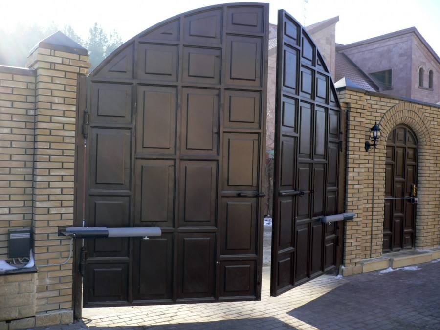 По способу открывания дверцы в ограде бывают традиционные распашные и откатные (даже с электроприводом).