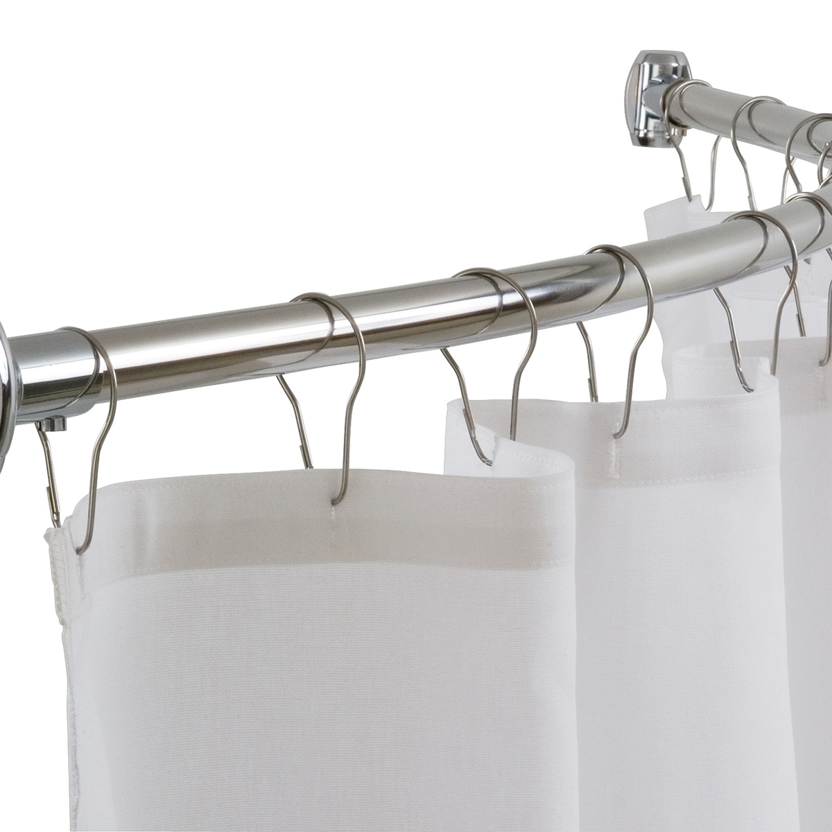 Этот вид основы для шторы идеально сочетается с ванной, обладающей выступающим углом, а также душем, не закрытым стеклом от остальной части комнаты. Как правило, карнизы для штор для угловой ванны изготавливаются из хромированной или легированной стали, представляя собой, как и в предыдущем случае, полую металлическую трубу.