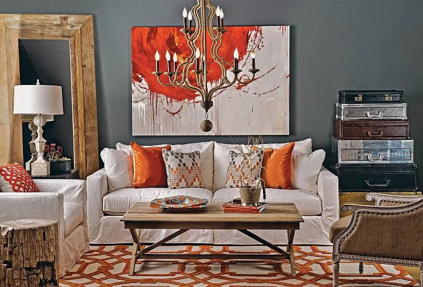 Современный интерьер с яркой картиной в гостинойИсточник all4decor.ru