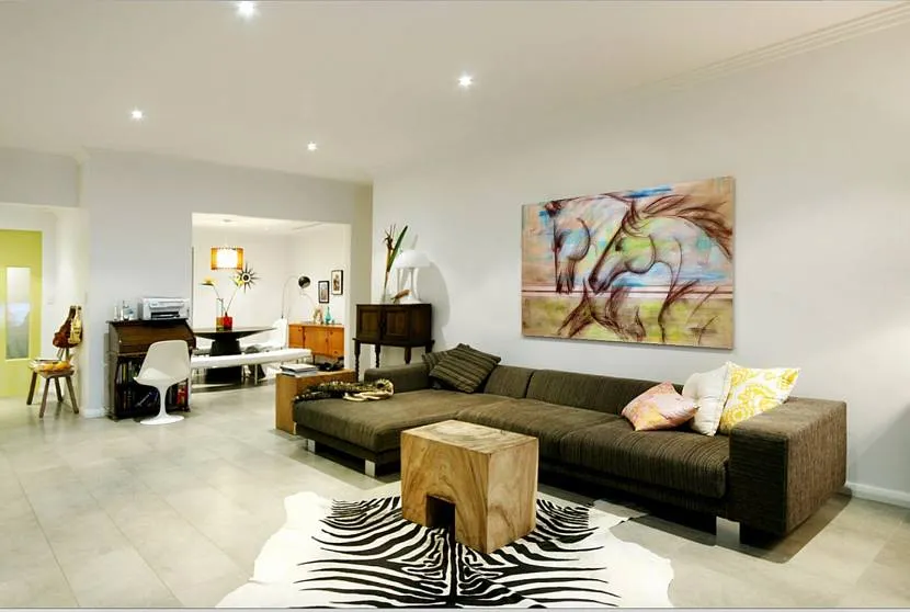 Модная живопись для просторной гостинойИсточник dekormyhome.ru