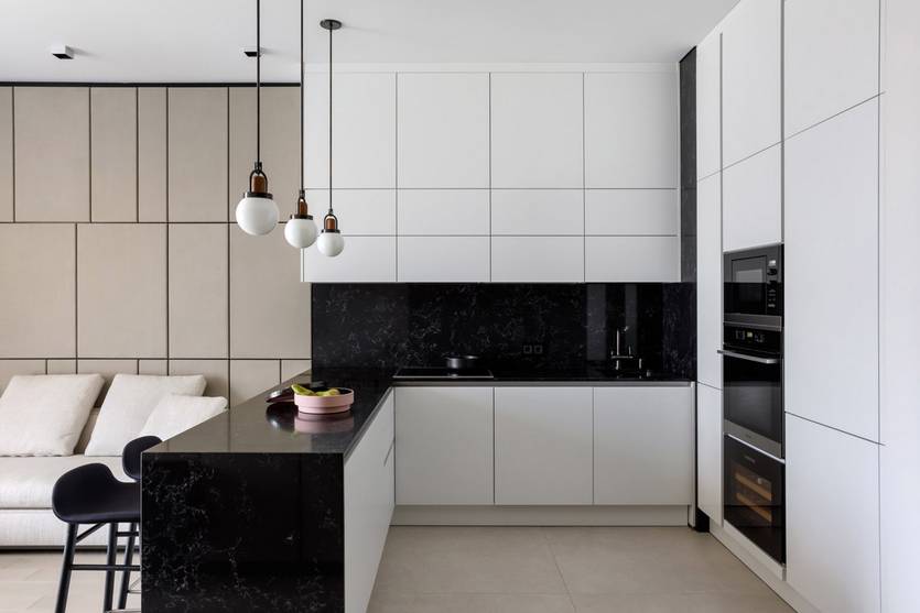 Чёрно-белая кухня в разных стилях интерьера