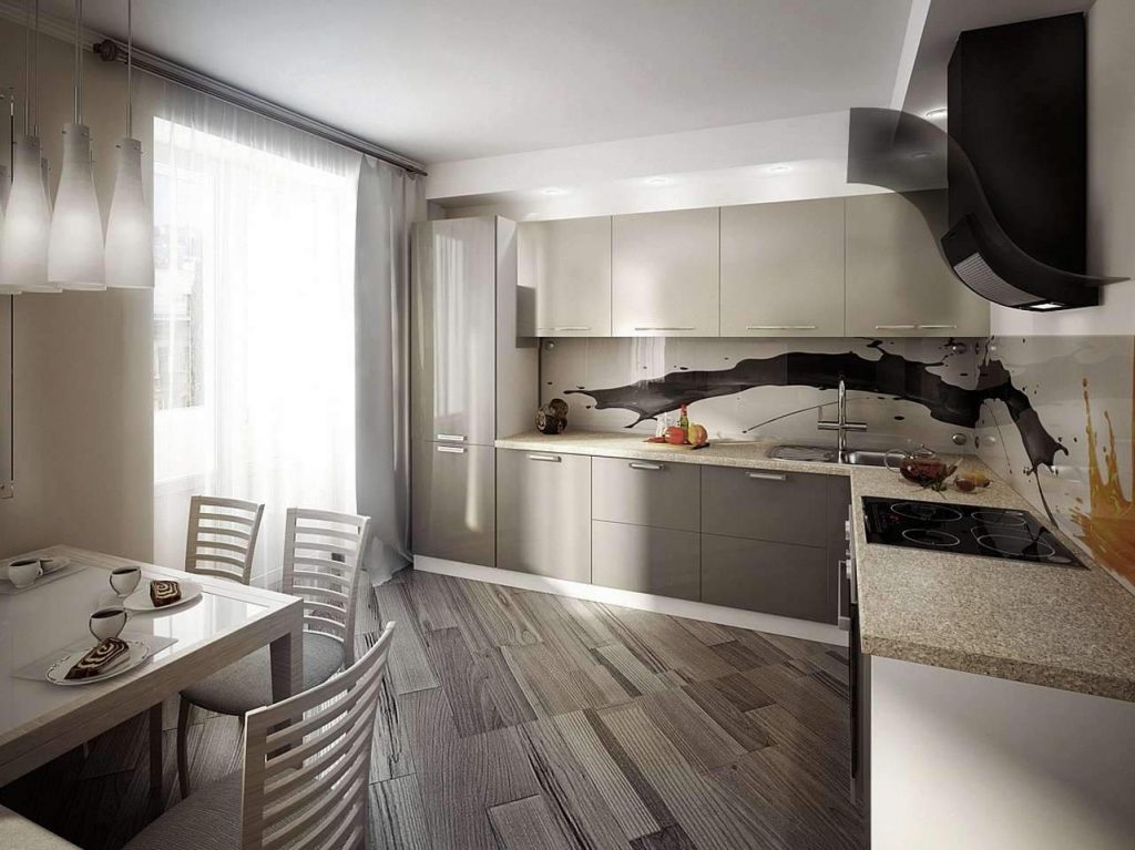 Минус такого пола заключается в высокой стоимости. Хорошо на полу будет смотреться керамическая плитка или керамогранит. Некоторые дизайнеры советуют постелить на кухонном полу ламинат, устойчивый к влаге.