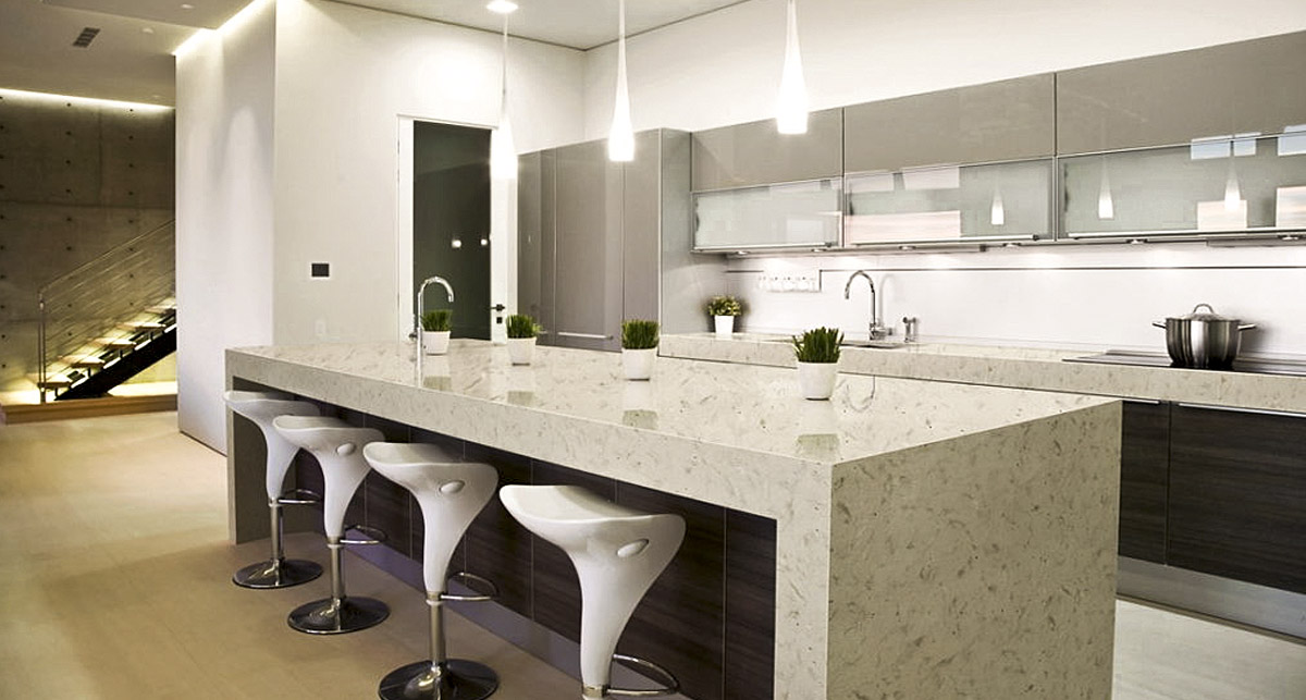 Столешница из искусственного камня не только выглядит стильно, соответствуя всем стандартам минимализма, но и является довольно практичной вещью.