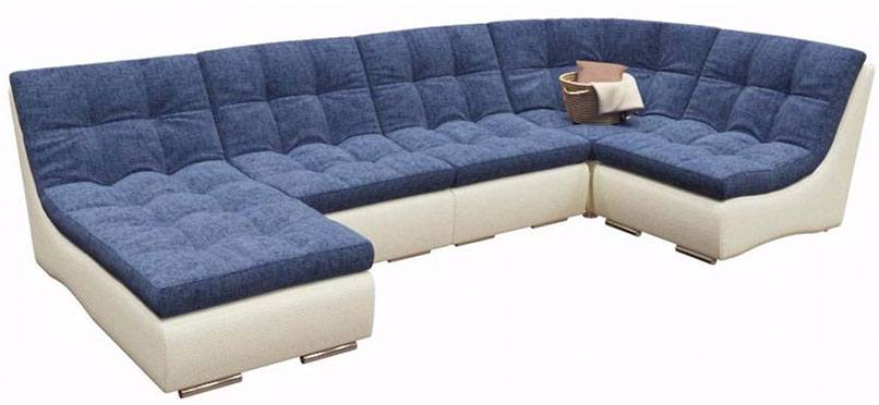 Модульная мебель представляет собой набор составных частей, комбинируя которые можно видоизменить мягкий комплект, расставив его удобным образом. Легко меняется поворот угла дивана влево или вправо, получается П-образный вид, полукруг, зигзаг и т. д.