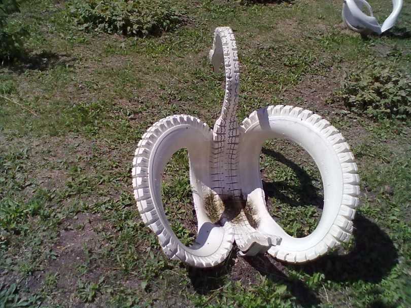 Фантазия людей безгранична, и они делают отличные украшения из старых автомобильных покрышек. Самые распространенные поделки — фигурки птиц и зверей. И, пожалуй, самый любимый персонаж — лебедь. Получается изящно и одинаково, особенно если знать несколько хитростей.