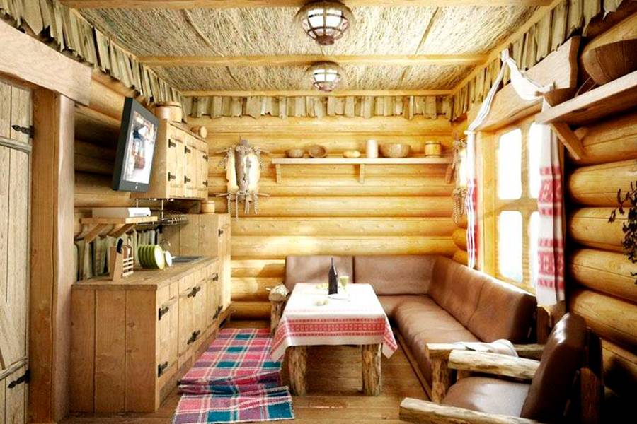 Для оформления комнаты отдыха в сауне используют такие элементы: