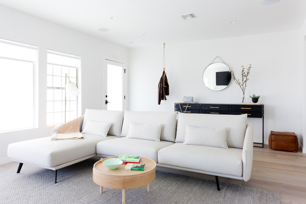 Белые глянцевые шкафы с черными боковинами отлично впишутся в интерьер стиля модерн или скандинавского. Для модерна также можно использовать черно-красное сочетание фасадов. Минимализм приветствует использование мебели такого типа. Обычно количество мебели для гостиной ограничивается длинной низкой тумбой под ТВ и одной или двумя подвесными системами хранения. Как правило, ручки отсутствуют, цветовое оформление при этом сдержанное.