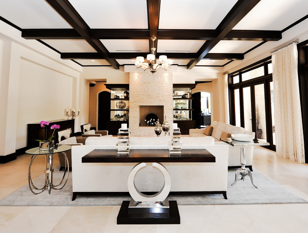 Ярко выраженные контуры, преимущественно аксессуары необычных форм – трапеции, зигзаги, ступени. Материал должен быть блестящим – сталь, хром, полированное дерево, зеркала. Приветствуется использование африканских и египетских мотивов.