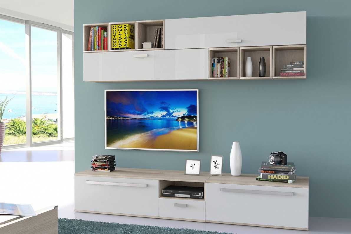 Оптимальным вариантом для гостиной являются плавающие консоли. Такие модели легко поддаются чистке, при желании их положение можно изменить, опустив конструкцию ниже или подняв ее.