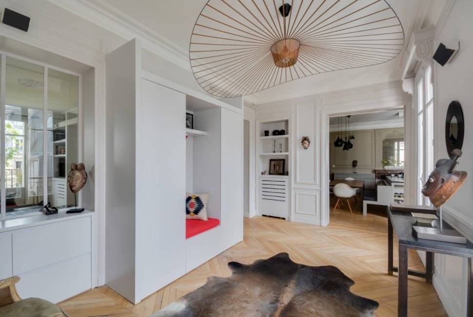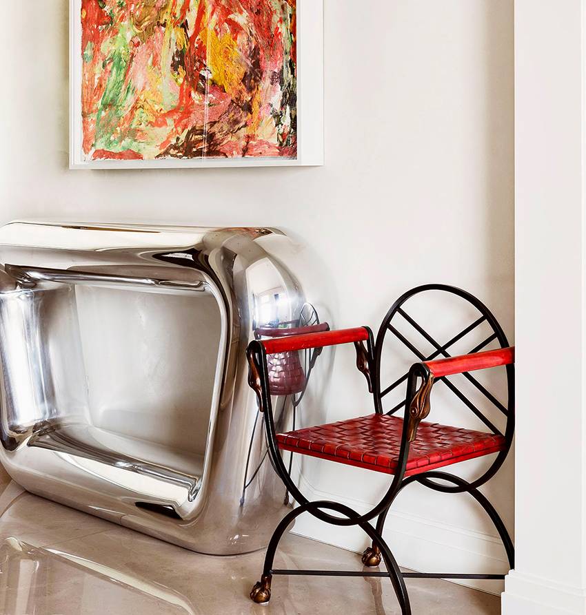 Яркая консоль с выразительным обликом освежит интерьер просторной прихожей