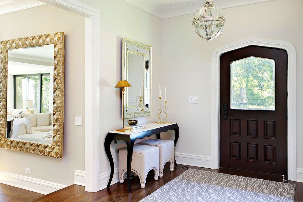 Консольный столик часто дополняется зеркалом и пуфиками