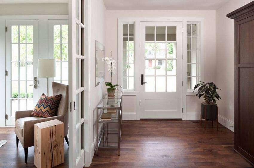 Оптимальным вариантом для оформления прихожей является белая, молочная гамма или оттенок айвори. Такой фон придаст обстановке максимум комфорта и красоты. Чтобы не перегружать дизайн узкой комнаты лучше выбрать бежевые, песочные или светло-коричневые цвета.