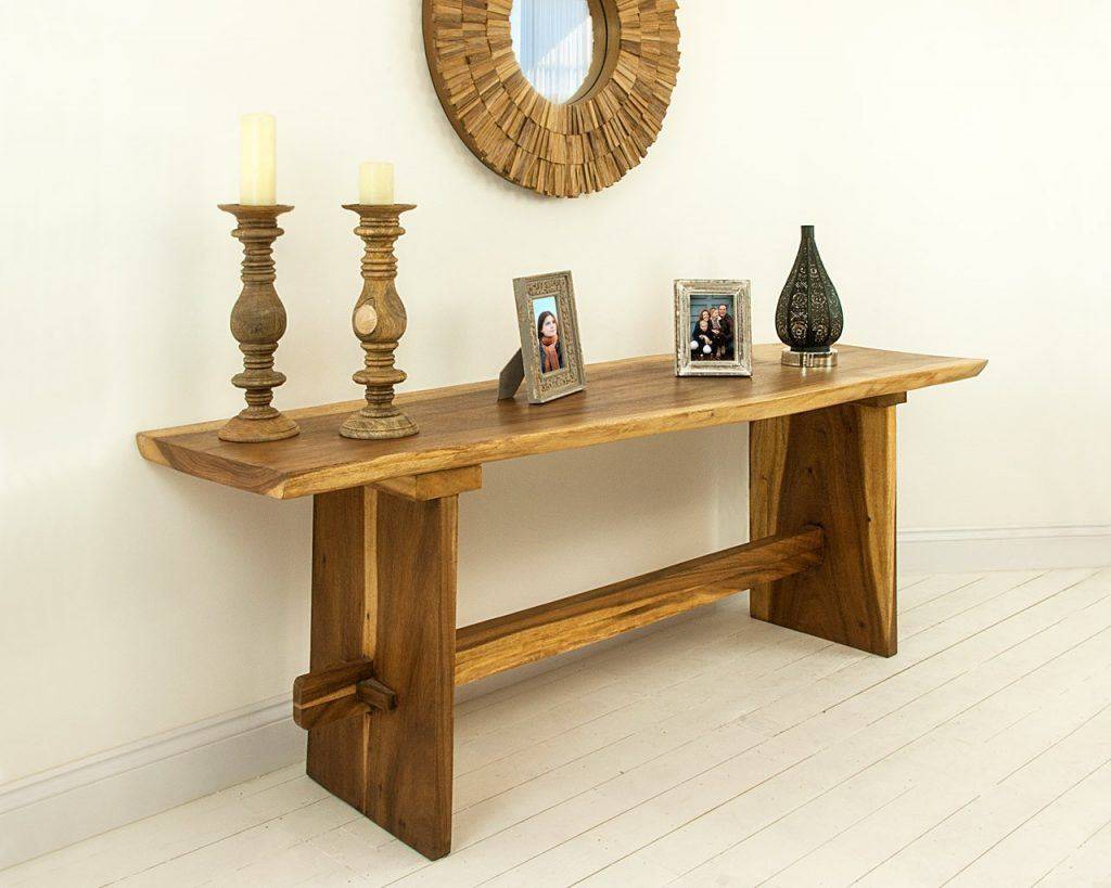 При желании приобрести экологически чистый предмет мебели стоит обратить внимание на деревянные консоли. Такие столики отлично вписываются в стиль кантри