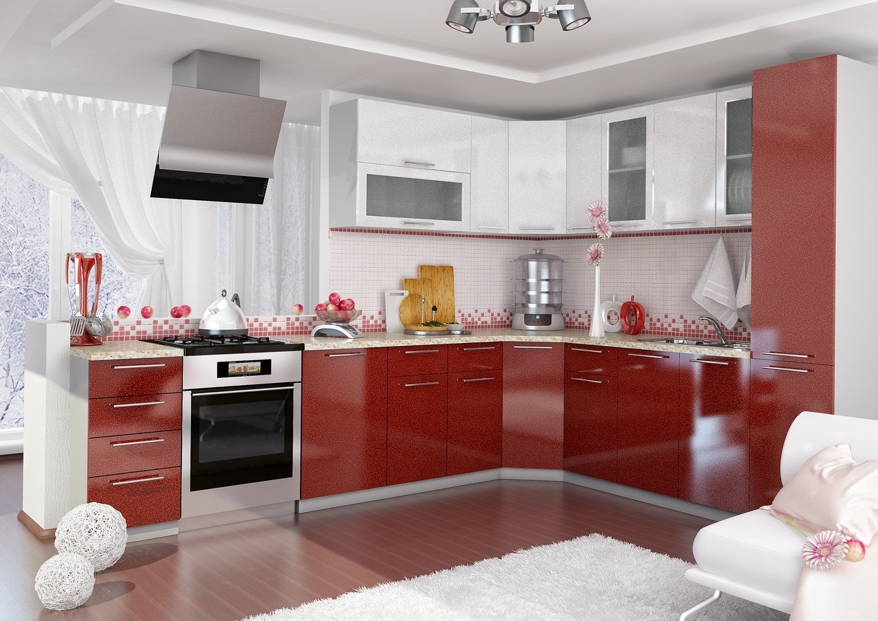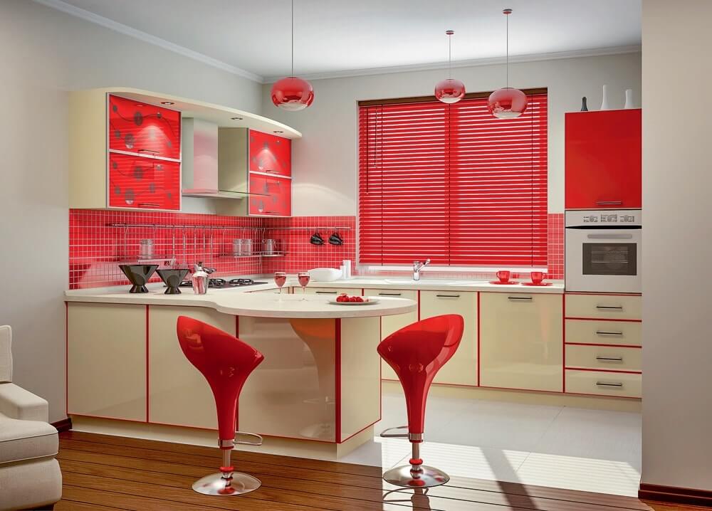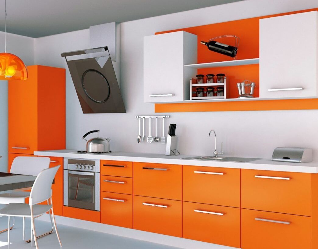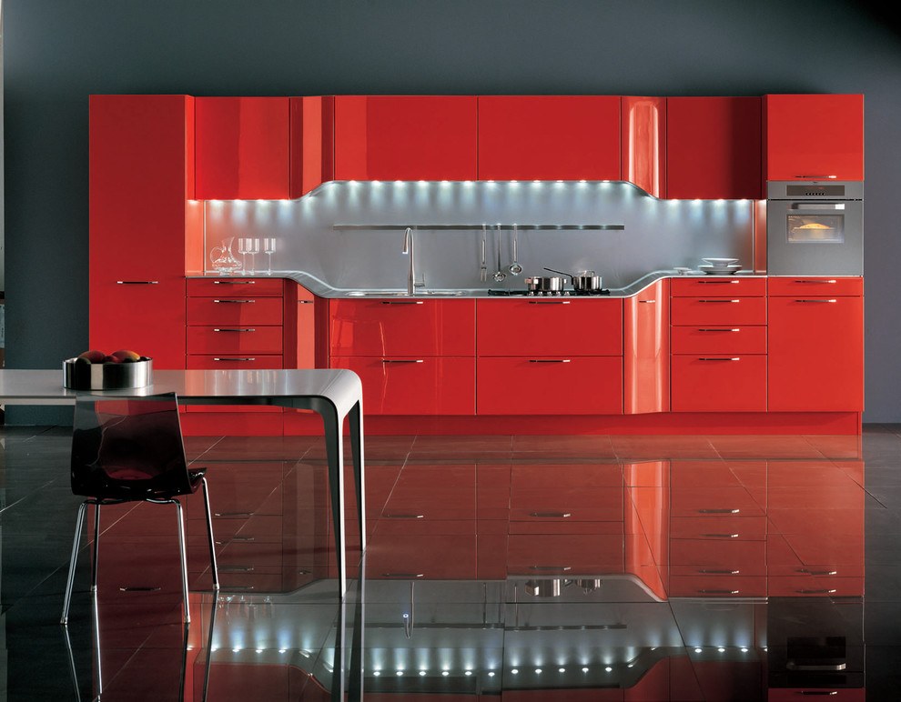 Коралловая расцветка кухни – смелое решение для креативных современных людей, сейчас модны насыщенные яркие тона в оформлении.