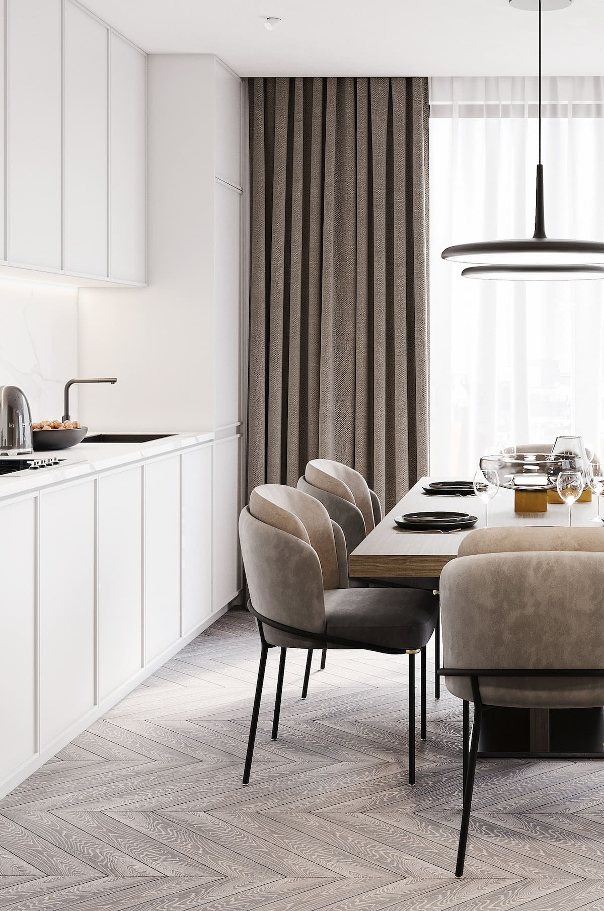 Такие идеально подобранные тандемы цветов сделают кухню одновременно строгой, благородной, но при этом стильной и шикарной.