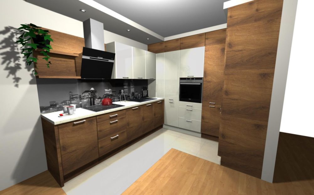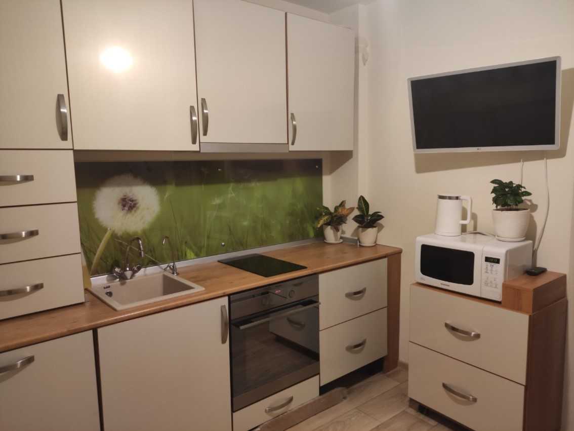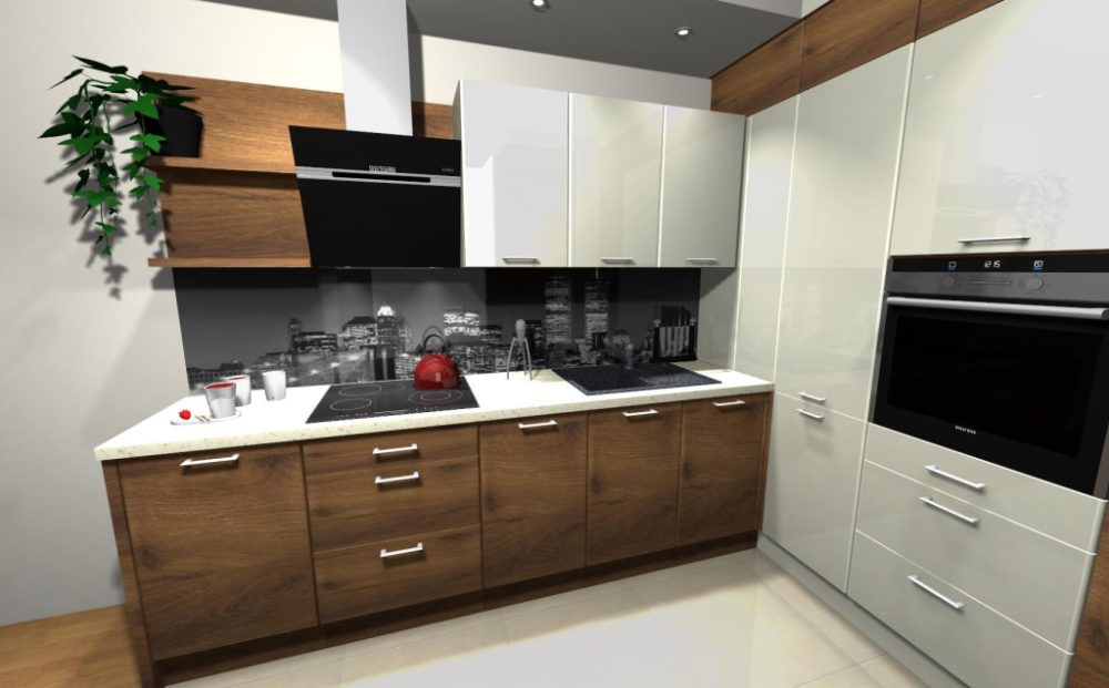 Линейный (прямой) гарнитур может быть небольшой длины (до 2,5 м) и компактно поместиться в маленькую кухню. Все находится на одной линии: раковина, кухонная плита, рабочая поверхность. Длинные гарнитуры (до 4 м) размещаются вдоль стены просторной кухни и освобождают место для большого обеденного стола и лаундж-зоны.