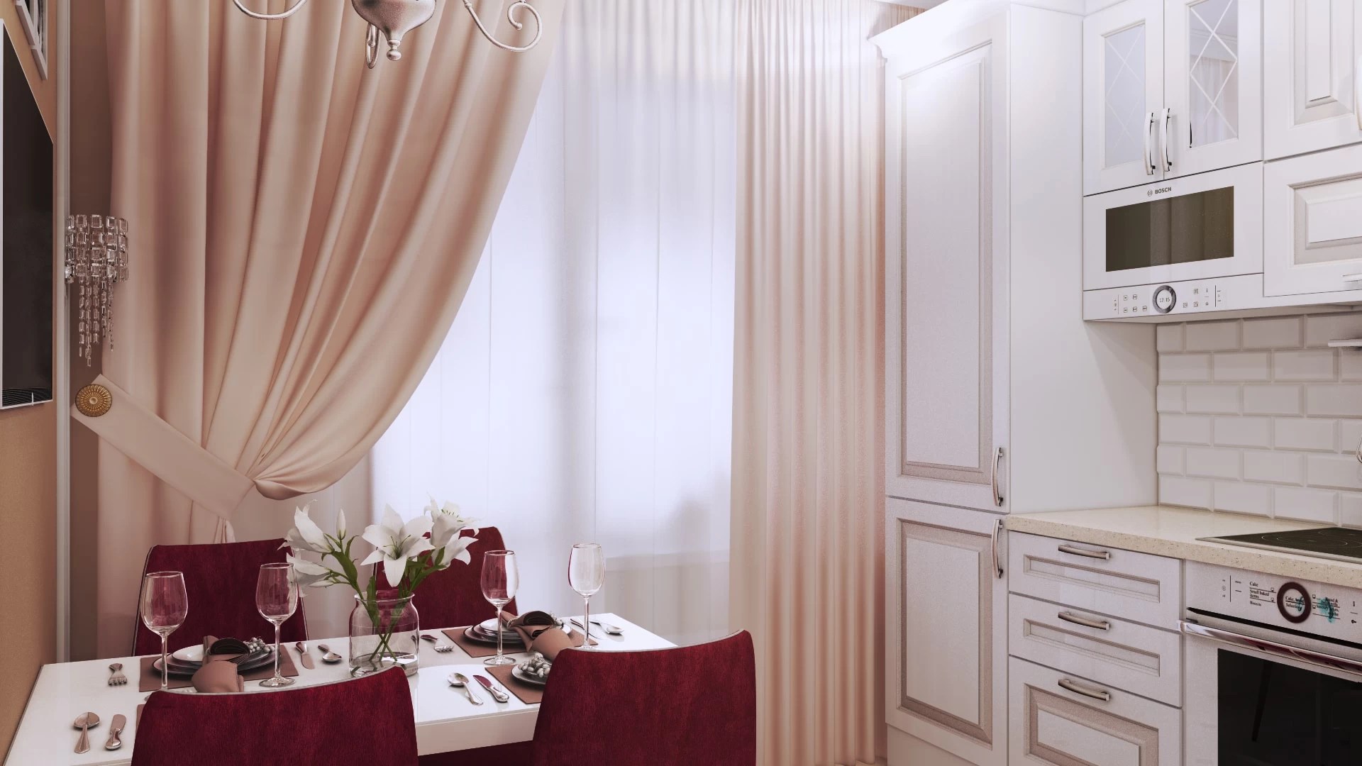 Подробнее о розовой кухне.