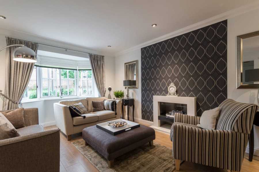 Черные обои с узорами в интерьере