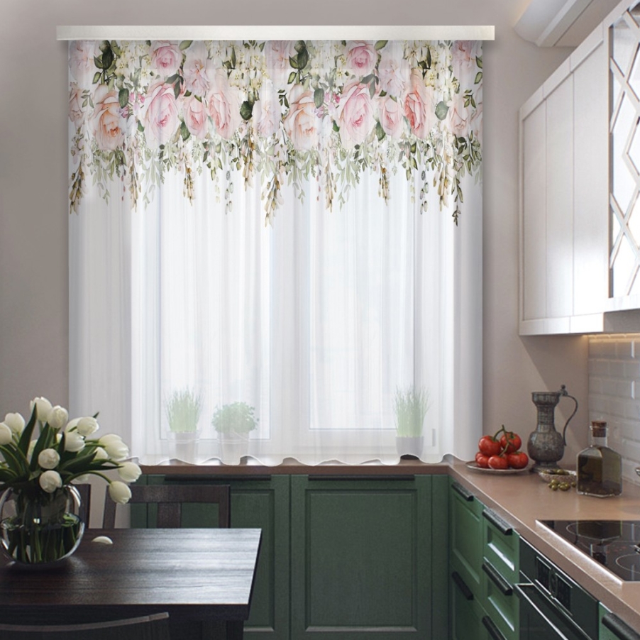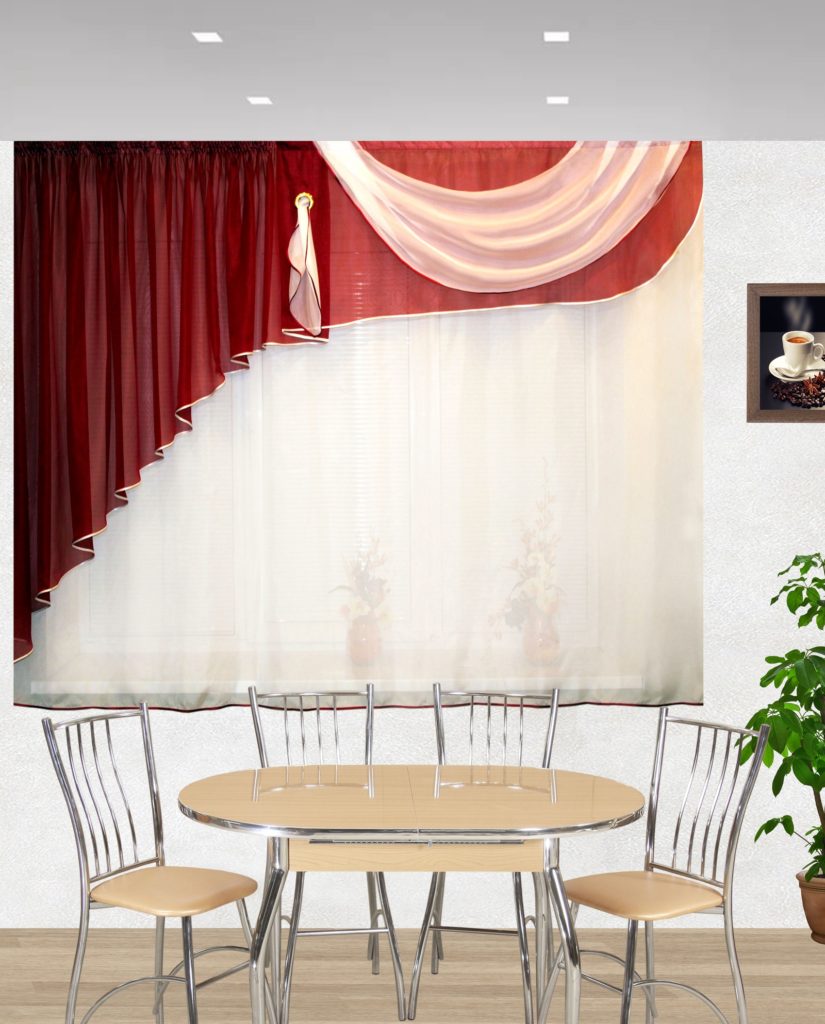 Варианты дизайна кухни с использованием занавесок, тюля кисея