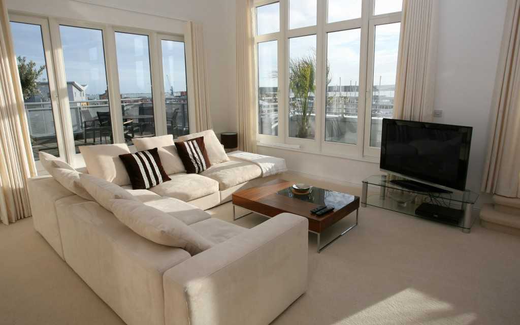 Также обращайте внимание на наполнитель и материал обивки: кожа подойдет не везде, а жаккард и велюр требуют ухода, а вот микрофибра – недорогой и простой в эксплуатации материал, как раз уместный в гостиной, где нагрузка на диван большая