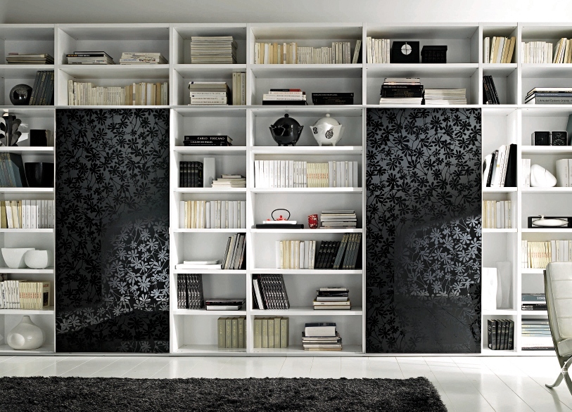 - Обычно в гостиных размещают также шкаф или несколько шкафов с открытыми и закрытыми полками. В таком шкафу можно хранить книги, фотоальбомы, предметы быта. Также открытые полки можно украшать аксессуарами – часами, статуэтками, вазами или небольшими скульптурами.
