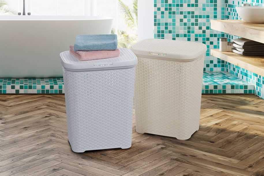 - Материал, из которого изготовлена корзина, очень важен. Желательно, чтобы он был нетоксичным и экологически чистым, хорошо эксплуатировался в помещении с повышенной влажностью и бы надежным.