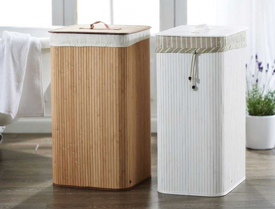 Самый распространенный тип, представленный в большом ассортименте. Для их изготовления используются различные материалы. Модели с крышкой можно разметить под раковиной или установить около стиральной машинки.