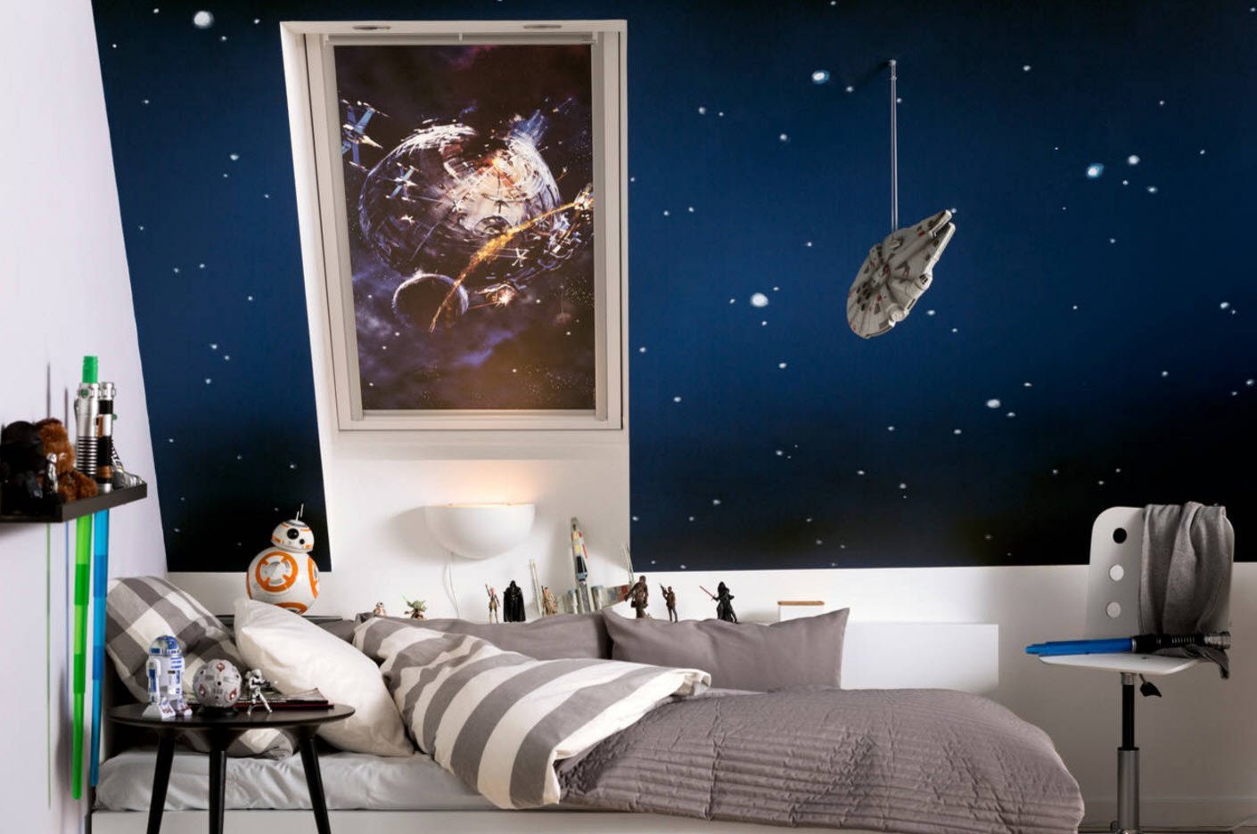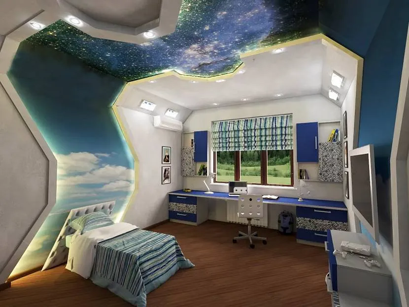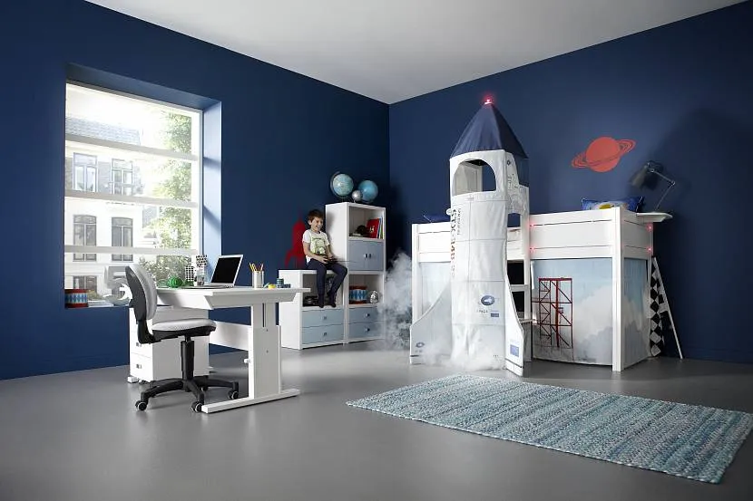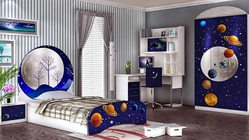 При желании письменный стол способен превратиться в пульт управления звездолёта. Шкаф-купе станет отсеком, в которых можно хранить много полезных предметов.