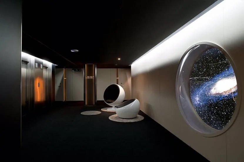 Вместо стен звезды, вместо окон вид на искусственный спутник земли Источник roomester.ru
