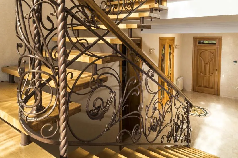 Кованая лестница со сложным растительным орнаментомИсточник stroikairemont.com