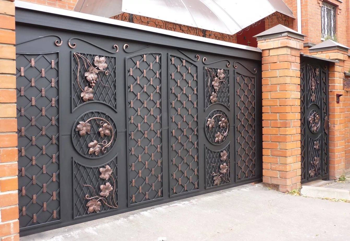 Калитка может устанавливаться отдельно либо встраиваться в створку. Создание воротной створки с установленной калиткой потребует большого опыта. Потребуется ставить каркас внутри конструкции ворот, выбирать рисунок так, чтобы все изделия выглядели как единая композиция. В калитке находится порог. Это нужно учесть, если в доме проживают люди, для которых его наличие может являться серьезной проблемой.