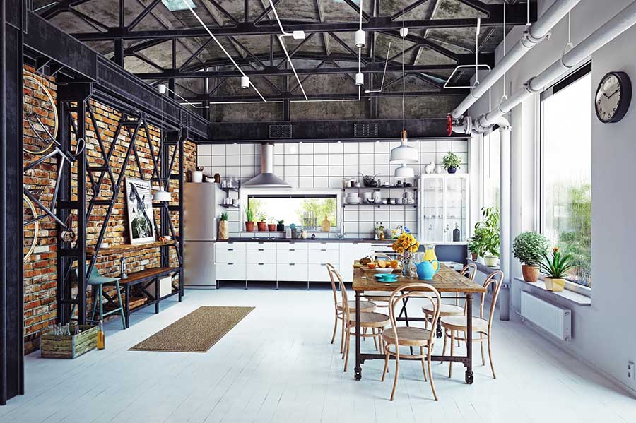 Последние десятилетия этот стиль не утрачивает свои позиции. Он интересен как самим декораторам, так и клиентам. Комбинация материалов отделки в таком направлении легко будет сочетаться с не пушистым ковром любого оттенка серого цвета — от светлого до антрацитного. Искусственная состаренность, потертость рисунка — фишка в этом дизайне.