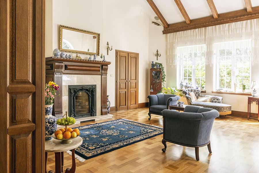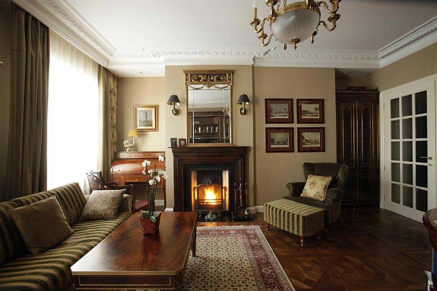 Сдержанная изысканность, граничащая с роскошью, — это английский стиль, вобравший в себя множество других направлений. От него веет состоятельностью и практичностью. Дорогое дерево сочетается с витиеватыми рисунками на текстиле. Красивые ковровые дорожки и большие ковры всегда расположены в центре комнаты.