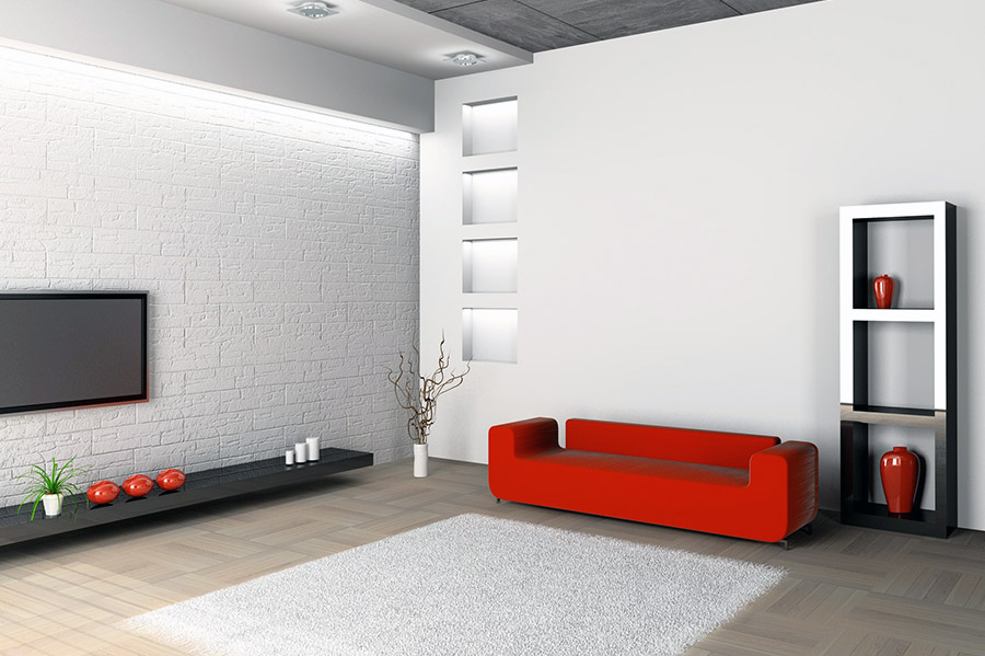 Можно лишь поэкспериментировать с оттенком, но все зависит от стиля оформления и палитры помещения. Но натуральные покрытия с длинным ворсом довольно сложны в уходе, а их стоимость достаточно высока. Еще одно отличительное свойство шерстяных ковров на пол — отсутствие ярких красок, что заметно и на фото зала, так как природный ворс плохо впитывает красящие составы. Зато этот недостаток компенсируется длительным сохранением цвета, ведь такие оттенки не выгорают, не теряют свою насыщенность.