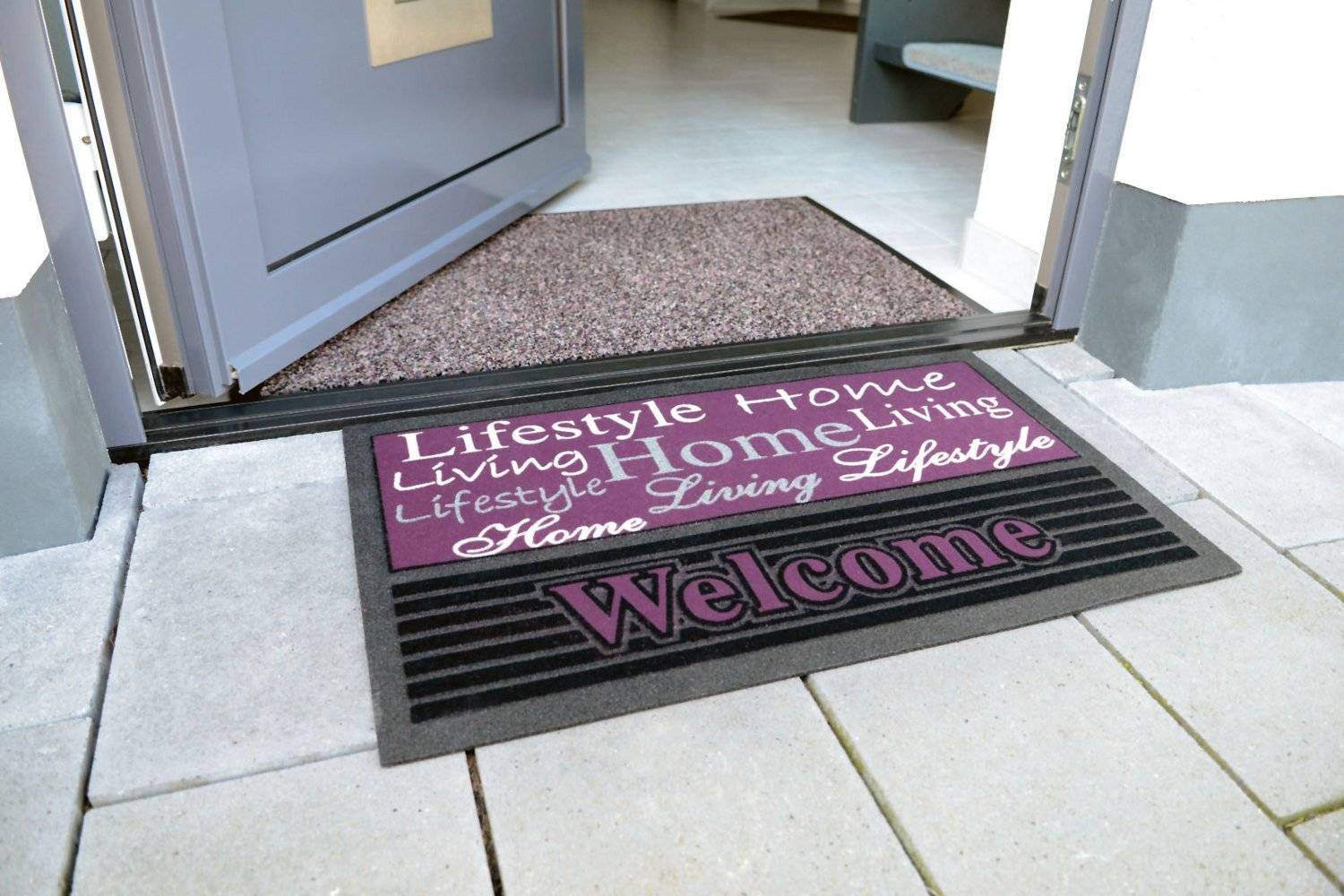 Маленькая ковровая дорожка с коротким ворсом у двери дома