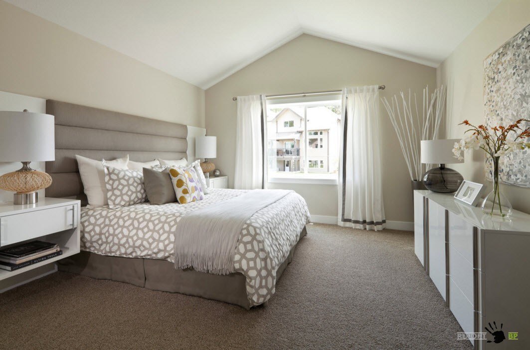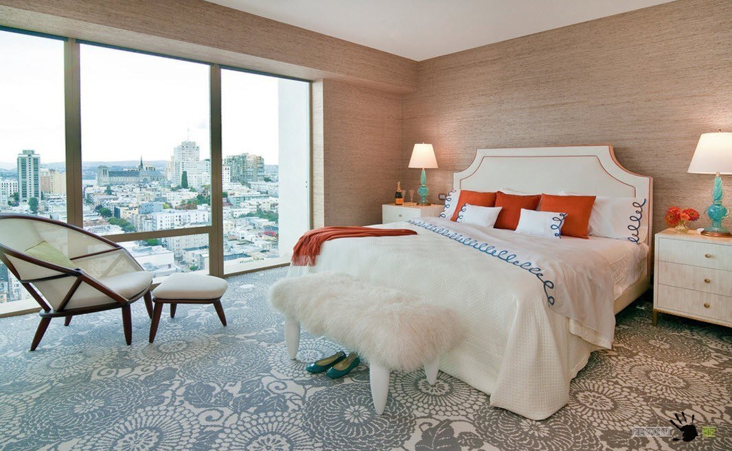 Мнения большинства дизайнеров интерьера сходятся в том, что с помощью правильно выбранного ковра для спальни, можно разделить помещение на несколько зон: прикроватную и зону отдыха. От цвета и текстуры половика зависит, насколько он впишется в тот или иной интерьер.