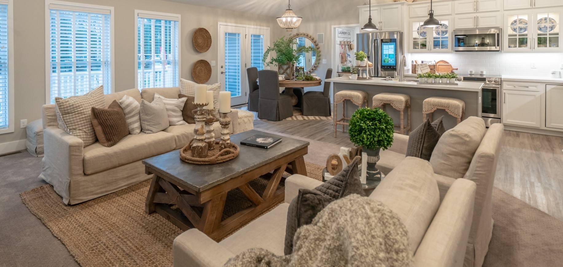 Для расстановки акцентов постелите несколько маленьких и небольших ковриков, выдержанных в одном стиле.