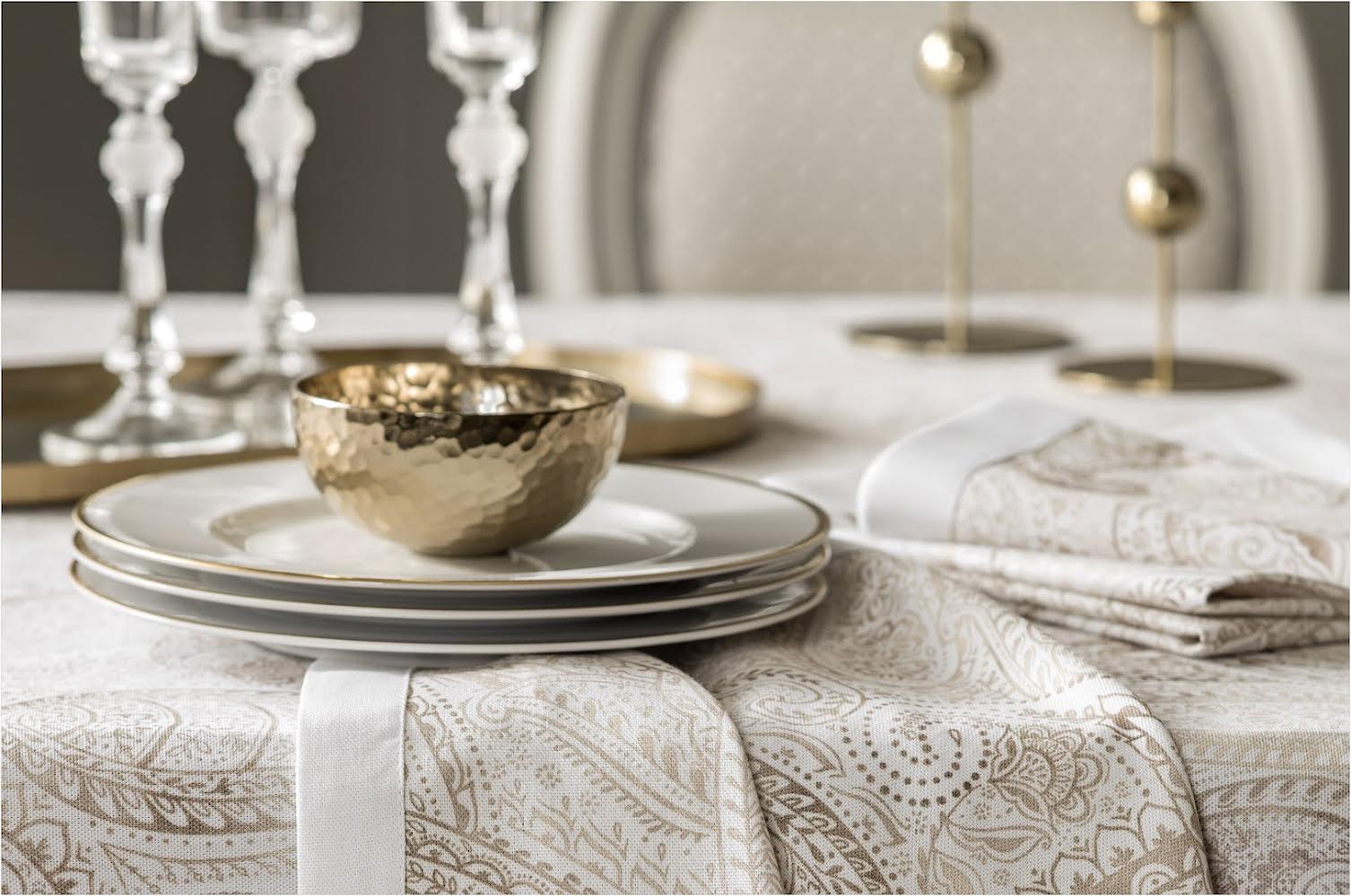 Многие производители могут похвастаться шикарными комплектами текстиля для сервировки. Планировать количество необходимо с расчёта по одной на человека. Однако отказываться полностью от бумажных салфеток не стоит. Они также подбираются в едином ансамбле с текстилем.