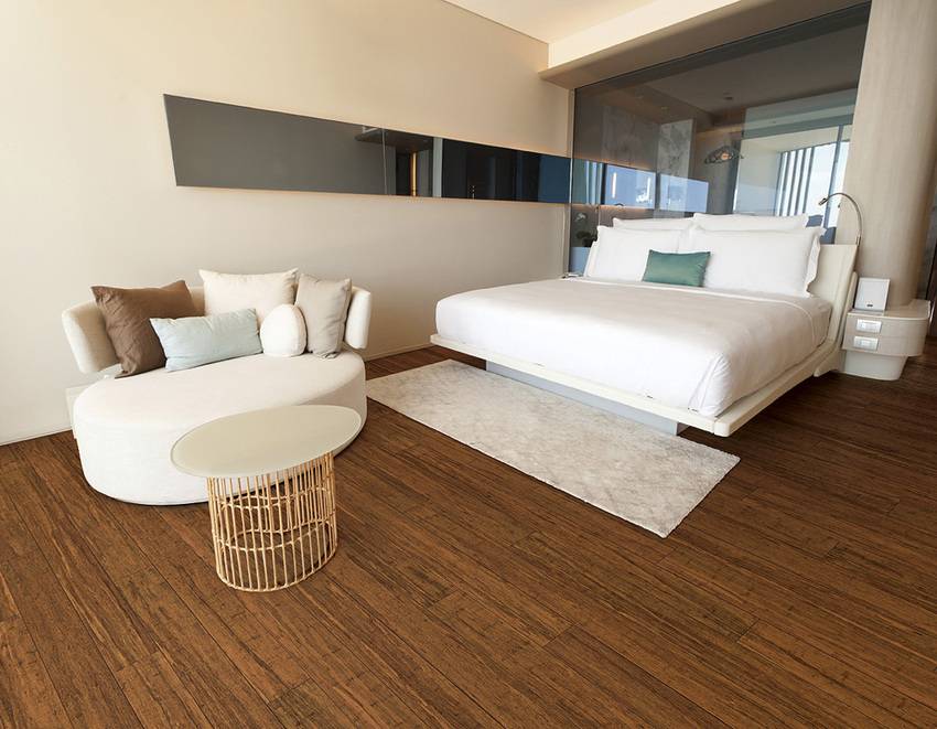 Новейший тренд — полы из бамбука, плитка терраццо, керамогранит, кварцвиниловая плитка.