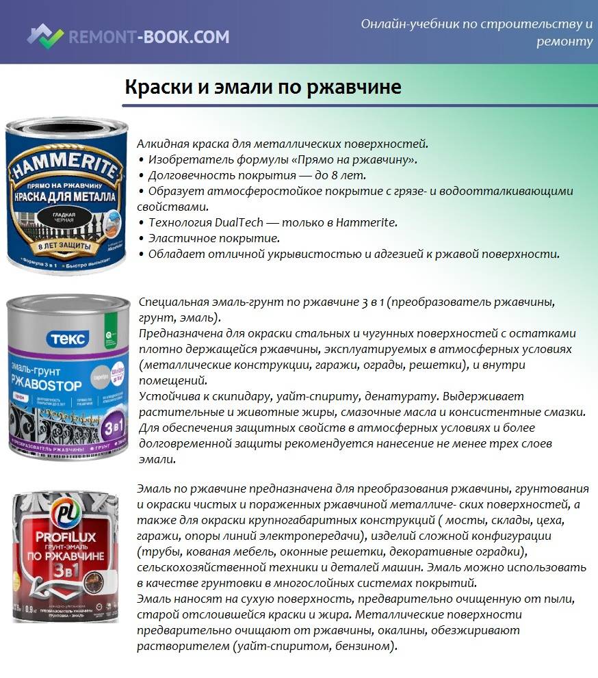 Как правило, используется краска по ржавому металлу для наружных работ, так как является высокотоксичной. Несмотря на то, что покрытие можно наносить на ржавчину, перед покраской поверхность все же необходимо очистить от рыхлых, отслаивающихся участков.