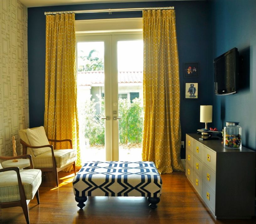 Удобно, если в комнате наклеены обои с узором. Шторы, одного цвета с цветом узора на обоях, гармонично впишутся в интерьер и дополнят всю картину.