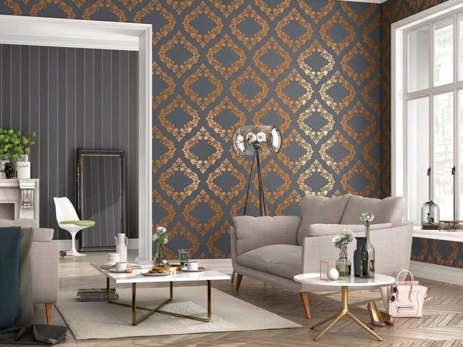 ” alt=”Обои в гостиную (+150 Фото) дизайнов современных интерьеров. Идеи комбинирования.”>