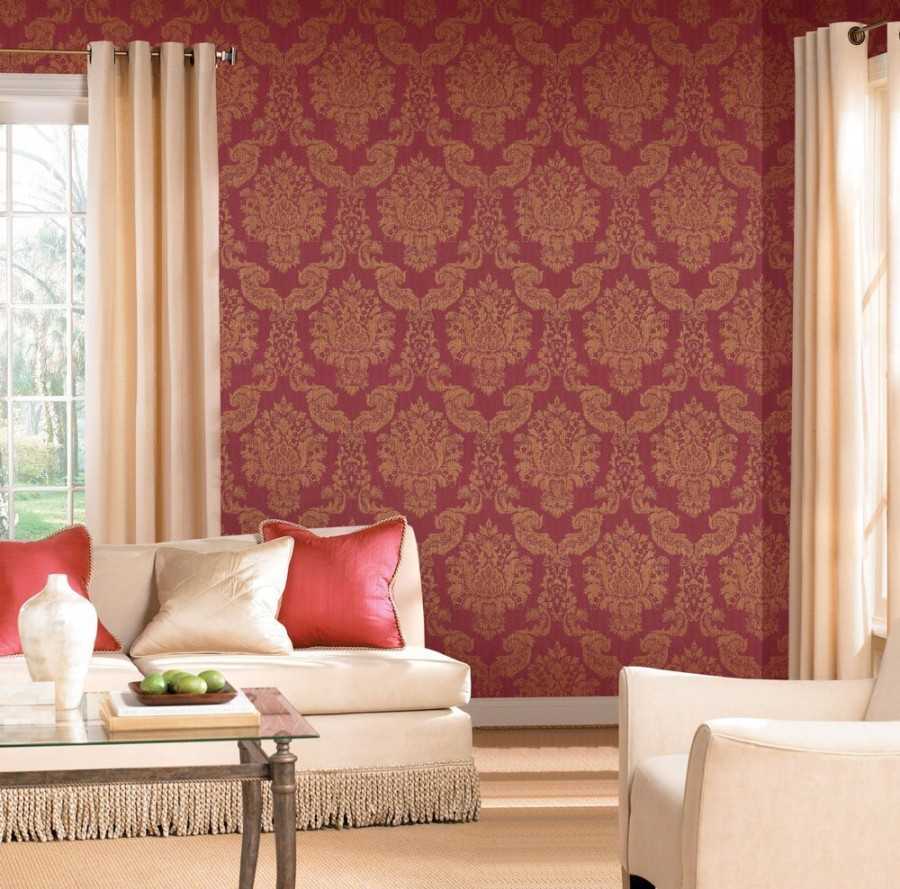 Что касается однотонных обоев, то тут обращайте внимание на тон красных обоев. Шторы и обои должны создавать некий баланс.