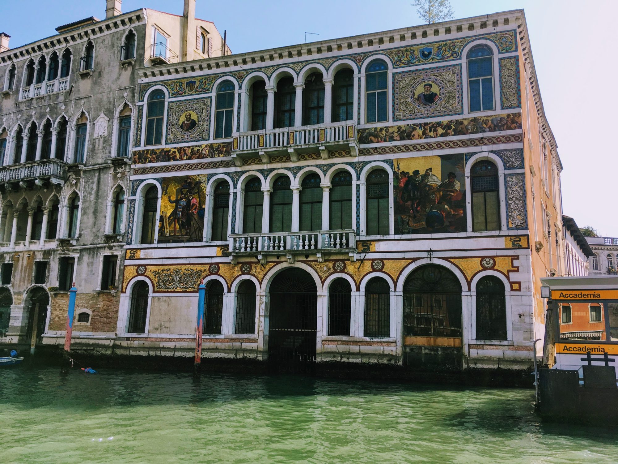 Архитектура Венеции сочетает в себе готические стрельчатые арки с влиянием византийских и арабских стилей. Дома и дворцы располагаются изящными фасадами вдоль Гранд-канала. Арки зданий чередуются с колоннами и окнами. Фасады иногда украшает мозаика. (Венеция)