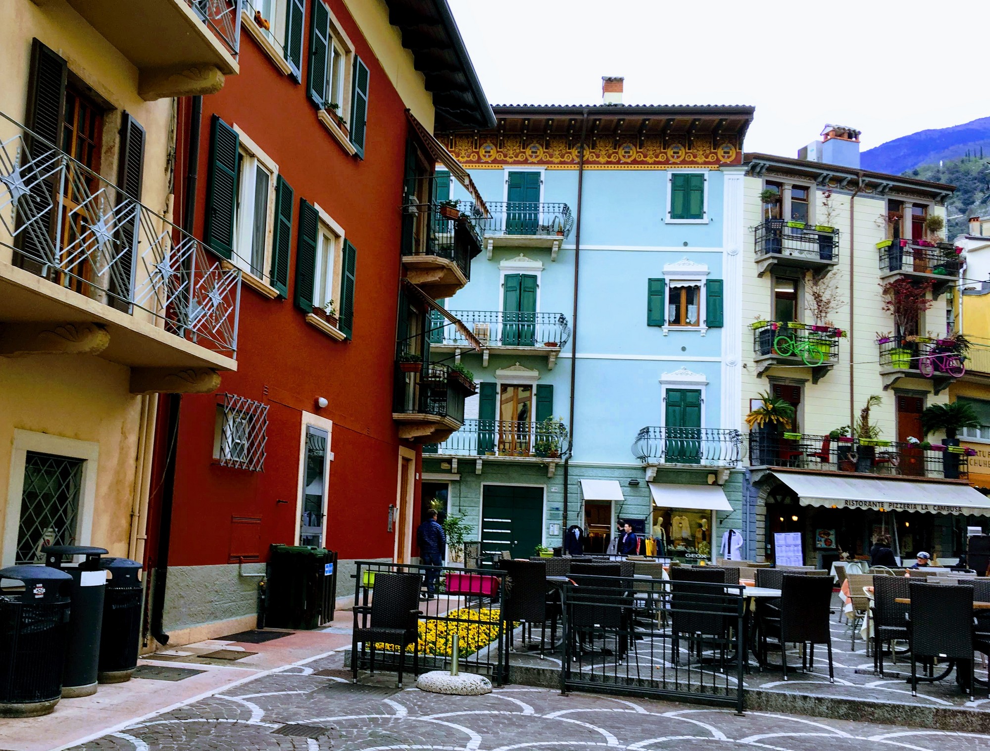 Многоцветные домики смотрятся очень мило в любую погоду. Цветные велосипеды на балконе как элемент декора. (Мальчезине)