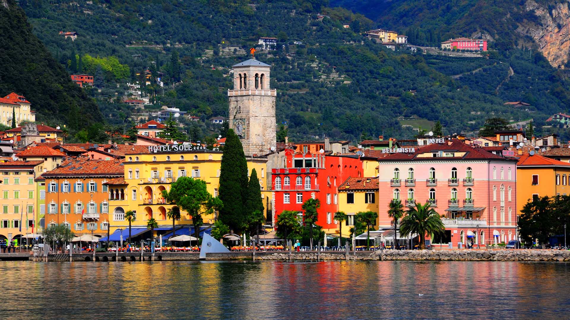 В Италии также традиционна роспись фасадов стен. Штукатурка не отваливается, краски не выгорают под ярким южным солнцем. В Рива-дель-Гарда на уровне мансардных этажей на стенах лепнина или декоративная роспись на стене.