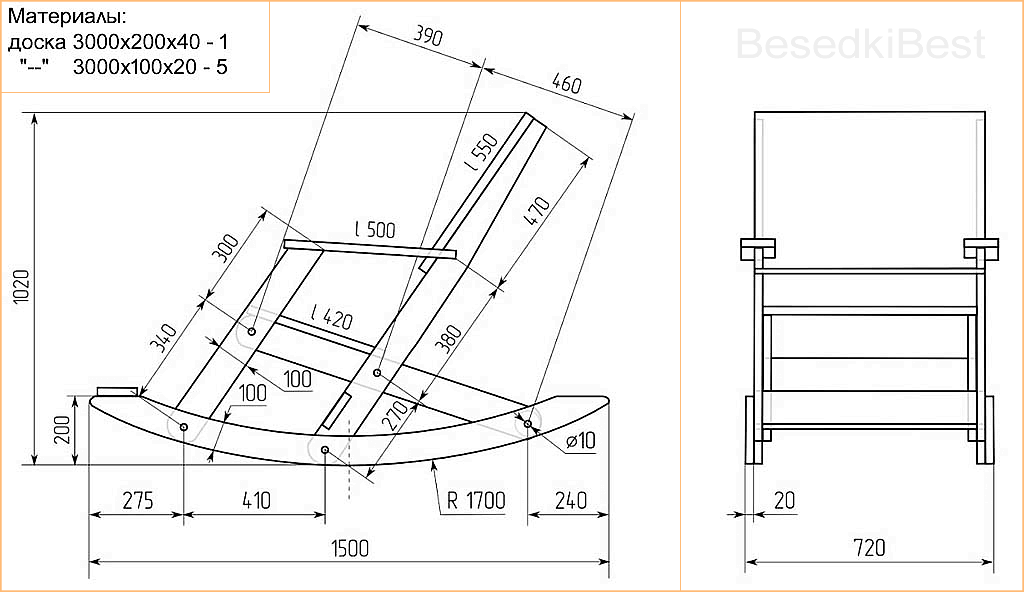 Перед тем как сделать кресло-качалку своими руками, нужно подготовить чертеж.