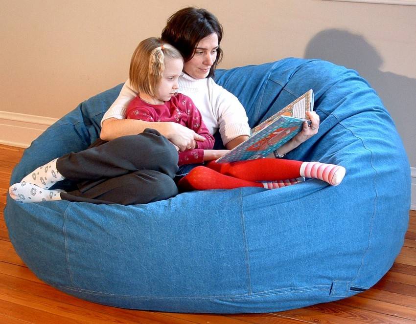 Возможно применение подручных материалов. Для загородного дома оптимально кресло-мешок из старых джинсов, плащевки.